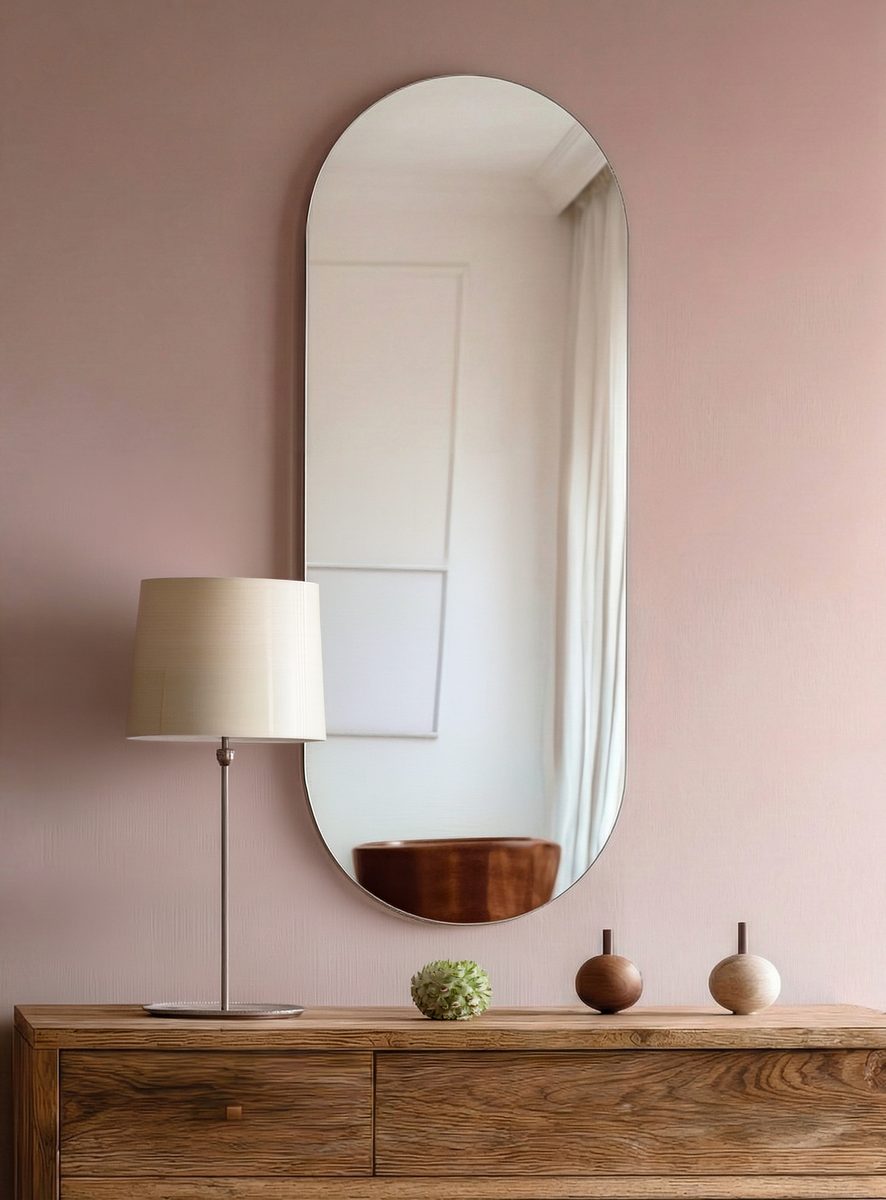 Eleganter Ellipsenspiegel mit schlanker Form und hochwertiger Spiegelfläche.