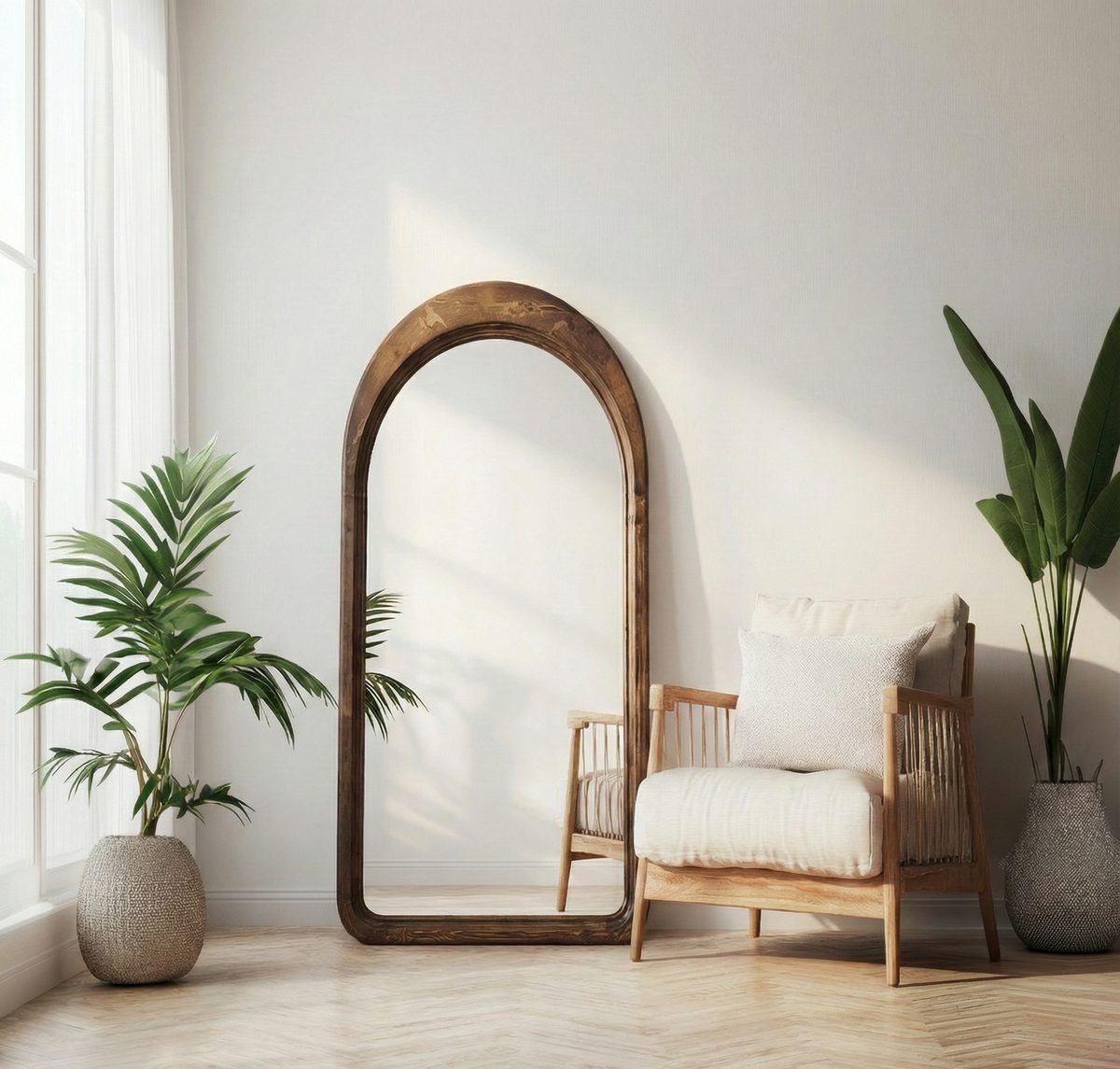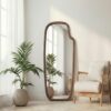 Eleganter Ovaler in 180×80 cm oder 180×100 cm. Wähle Naturholz oder Walnussholz-Look – ideal für Flur, Schlafzimmer und Ankleide.